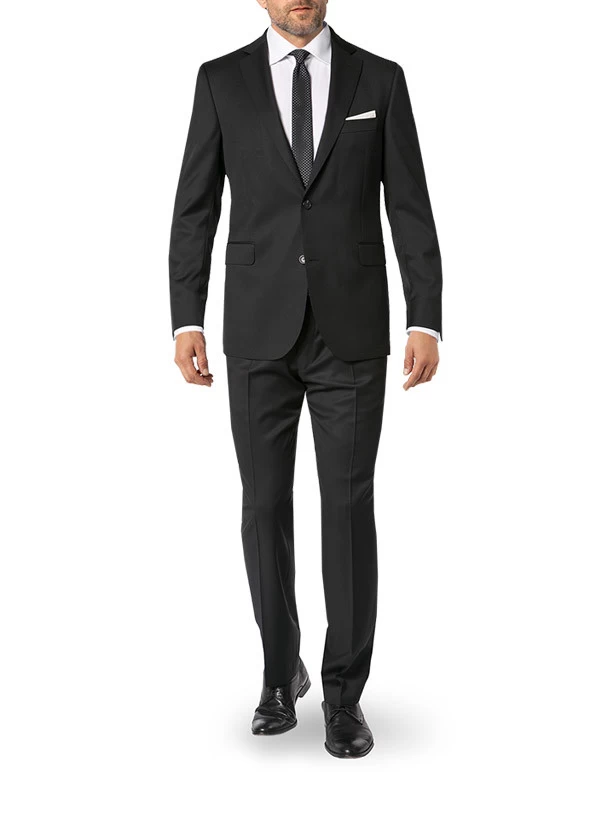 Exklusiver Anzug, der sich im souveränen Stil und in maskuliner Eleganz präsentiert. Die handwerklich perfekte Verarbeitung mit dem Anspruch höchster Schneiderkunst zeichnet diesen Zweiteiler aus. Klassische Details präsentieren sich im exzellenten Look. Für besten Tragekomfort wird für den kompletten Anzug nur qualitativ hochwertigstes Material verwendet, inklusive der Horn-Knöpfe. Die schlanke Silhouette bietet trotzdem bequemen Sitz.
