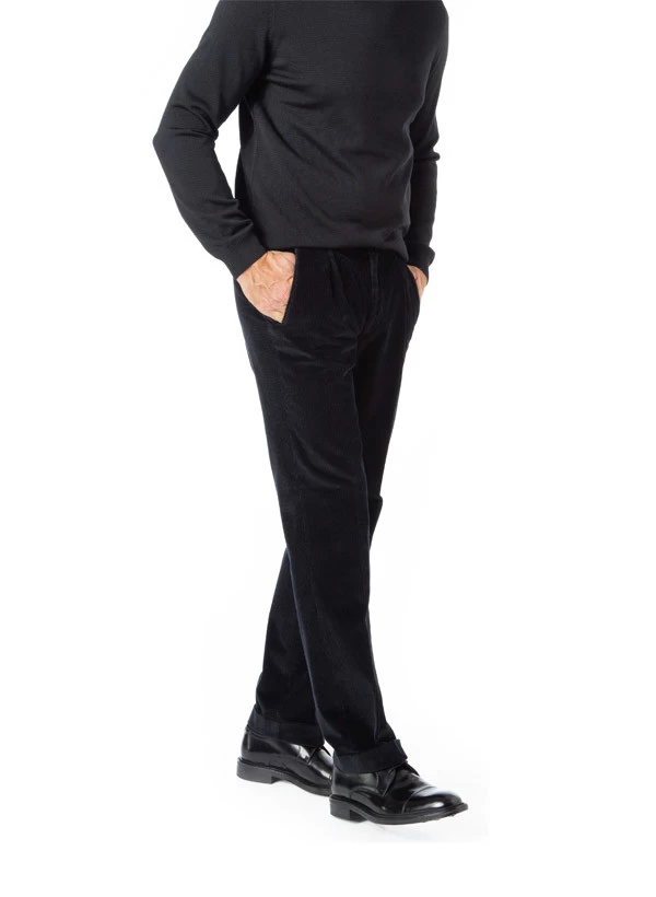 Bundfaltenhose Morello-U, Classic Fit, Cord, Schwarz