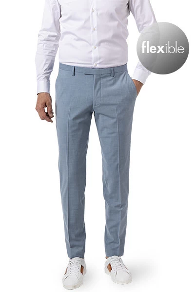 Aus innovativer Power Stretch Qualität und mit einer dezent melierten Optik bringt diese Hose Dynamik in den Business Look. Leichter, elastischer Schurwoll Mix sorgt dabei für Komfort, der extra schmale Schnitt betont die schlanke Figur.