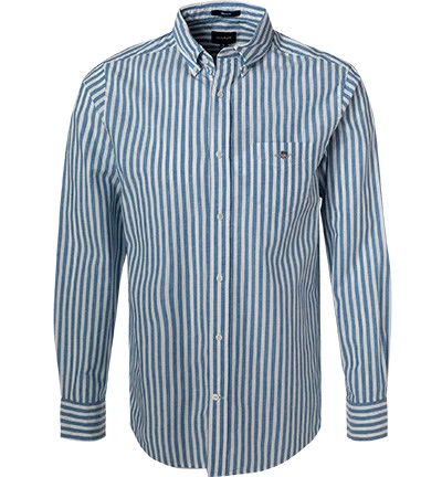 Gant Hemd, Regular Fit, Baumwolle-Leinen, Jeansblau-ecru Gestreift