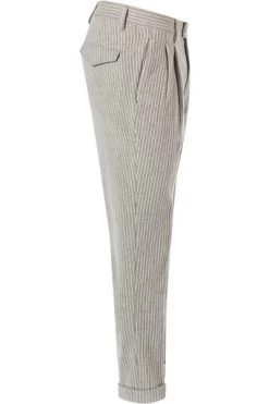 Diese Hose mit Unikatcharakter ist aus reiner Schurwolle und hat eine interessante Rippenstruktur in Cord-Optik. Das Bundfalten-Modell mit Saumumschlag ist in Slim Fit Passform gefertigt – so wird ein Klassiker zum modischem Statement.