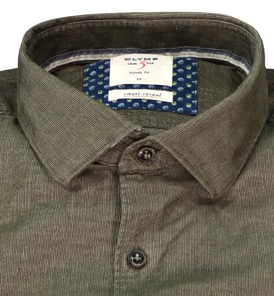 Dieses Hemd mit lässiger Austrahlung ist aus Feincord mit gewollten Farbdifferenzen gefertigt. Körpernah geschnitten wird die schlanke Silhouette betont. Ein schmales Kontrastband am inneren Kragensteg setzt einen modernen Akzent.